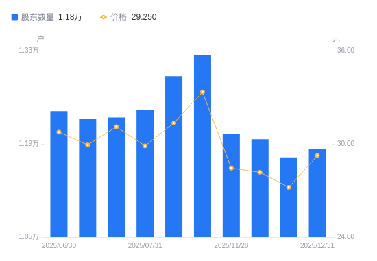 1月6日动静,数据显示,截至2025年12月31日,通力科技A股股东总户数为1。18万户,较上期(2025年12月20日)添加131户,公司最新A股总股本为1。52亿股,此中畅通A股3808万股,户均持有畅通A股数量为3219。75股,较上期削减36。06股,降幅1。11%;户均持畅通A股市值9。42万元,较上期添加5619。59元,增幅6。35%。