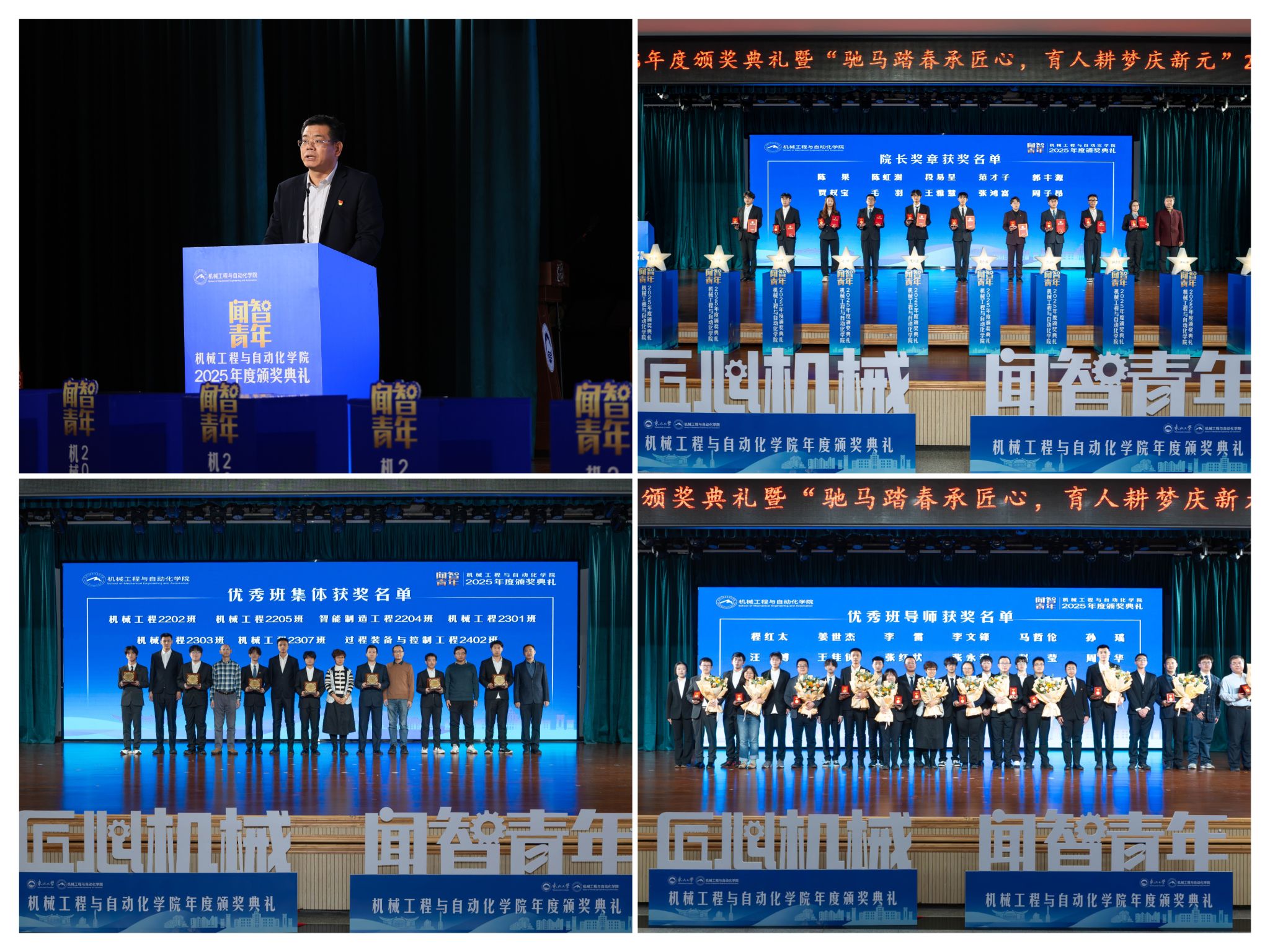 据悉,“闻智青年”是机械工程取从动化学院出力打制的文化育人品牌。本次颁仪式既是年度的集中展现,激励朝上进步的主要平台,旨正在指导全体学生以先辈为楷模,坚想、夯实专业根本、锻制立异能力,勤奋成长为具有家国情怀、全球视野取创制活力的杰出工程人才,为学校“双一流”扶植和高质量成长注入芳华力量。